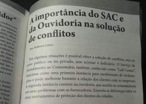 Dentre os temas abordados, está o artigo de minha autoria: “A Importância do SAC e da OUVIDORIA, na Solução de Conflitos” – Por Roberta Lídice.