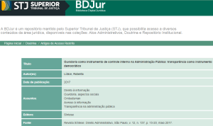 Biblioteca Digital Jurídica – BDJur. Ouvidoria como instrumento de controle interno na Administração Pública: transparência como instrumento democrático. Autora: Roberta Lídice.