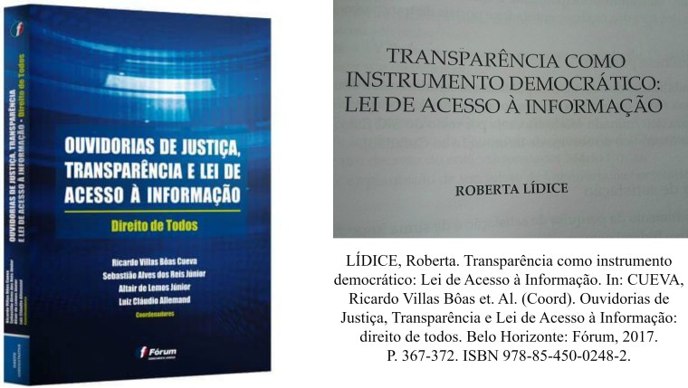 (ISBN 978-85-450-0248-2. LÍDICE, Roberta. Transparência como instrumento democrático: Lei de Acesso à Informação. Belo Horizonte: Fórum, 2017. P. 367-372).