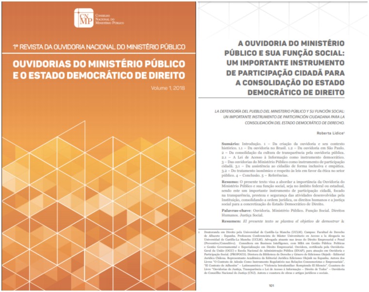 Nesta primeira edição, para compor o eixo temático central que trata da relação das Ouvidorias do Ministério Público com a concretização do Estado Democrático de Direito, foi publicado o texto de minha autoria, intitulado: