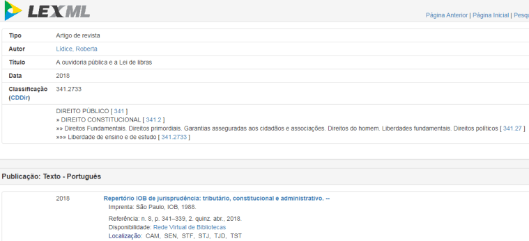 *LEXML: Rede de Informações Legislativas e Jurídicas – Iniciativa do Governo Eletrônico Brasileiro (eGOV). Texto disponibilizado: “A Ouvidoria Pública e a Lei de Libras: Inclusão Social Como Exercício da Cidadania” – Autora: Roberta Lídice.