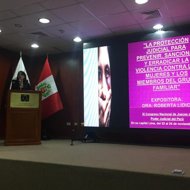 *Impartición de ponencia con el tema: “Violencia Familiar: Rompiendo el Silencio”, en el XI Congreso Nacional de Jueces del Poder Judicial del Perú – Expositora: Dra. Roberta Lídice.