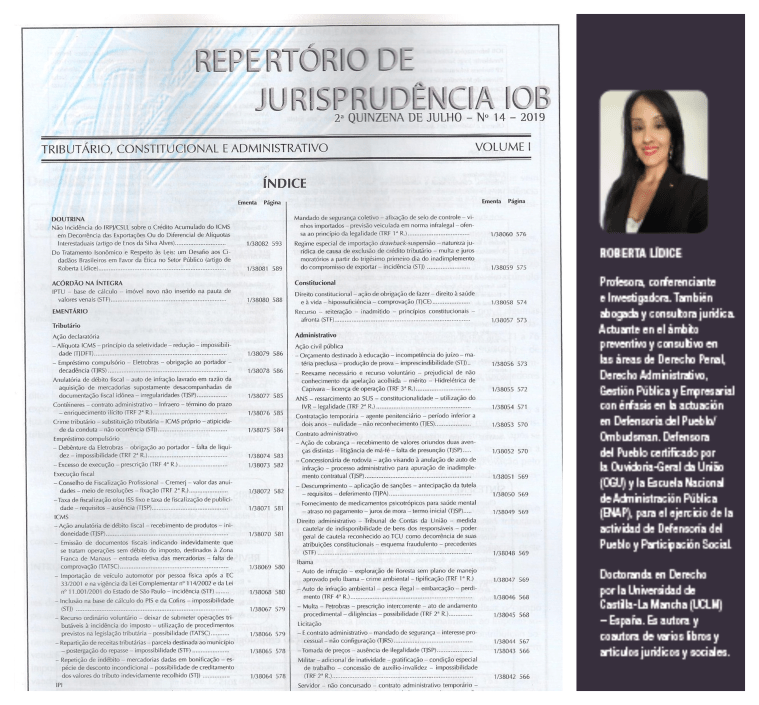 REPERTÓRIO DE JURISPRUDÊNCIA IOB – ISSN 2175-9987. Nº 14/2019.
