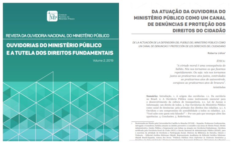 REVISTA DA OUVIDORIA NACIONAL DO MINISTÉRIO PÚBLICO – Revon, Vol. II, 2019. Conselho Nacional do Ministério Público (CNMP). Lançamento: Agosto 2019 – Brasília-DF.