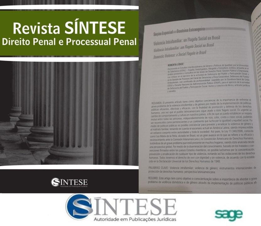 [¹] LÍDICE, Roberta. “Violencia intrafamiliar: un flagelo social en Brasil”= Violência intrafamiliar: um flagelo social no Brasil = Domestic violence: a social flagelo in Brazil. In: Revista Síntese: Direito Penal e Processual Penal, v.22, n. 130. Porto Alegre: Editorial IOB-SAGE, out./nov. 2021, p. 190-210. ISSN 2179-1627.