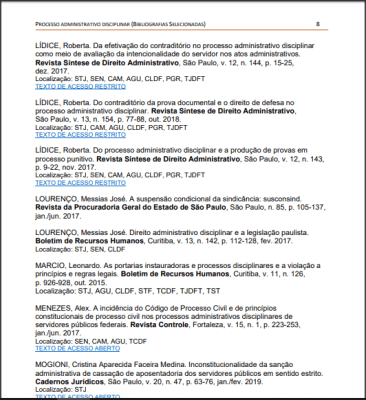 Bibliografias Selecionadas STJ_Processo Adm Disciplinar_2020 II