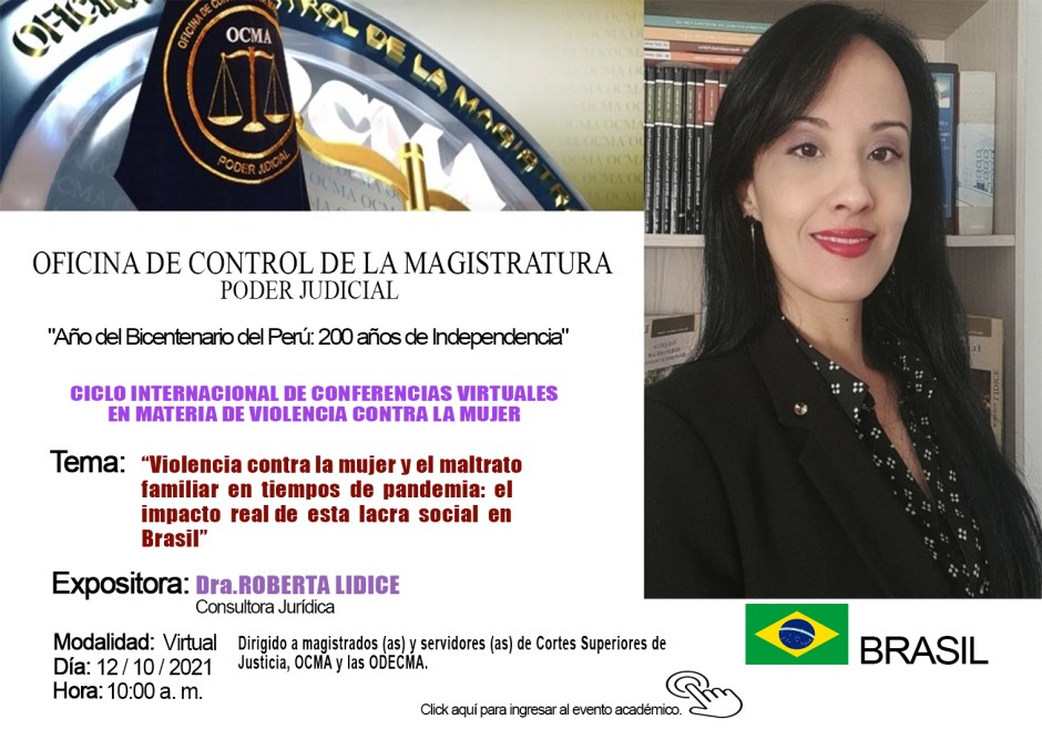 Me siento muy honrada y agradecida por la invitación recibida por parte de la Oficina de Control de la Magistratura del Poder Judicial del Perú, para integrar el panel de Expositores Internacionales del “Ciclo de Conferencias Virtuales En Materia De Violencia Hacia La Mujer”.